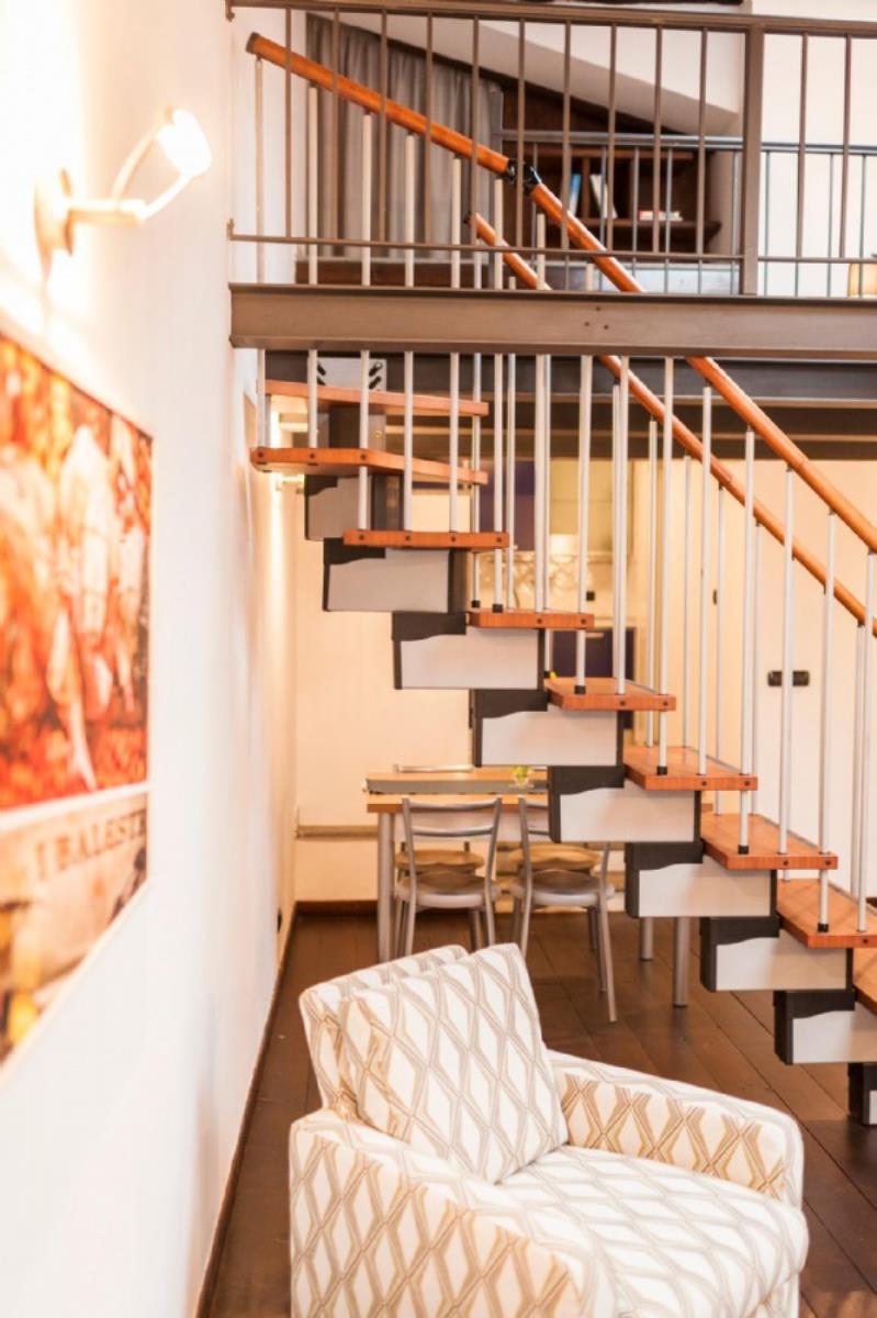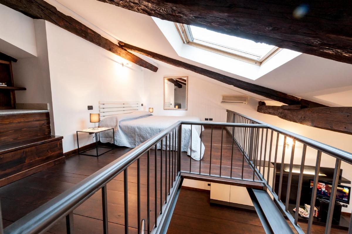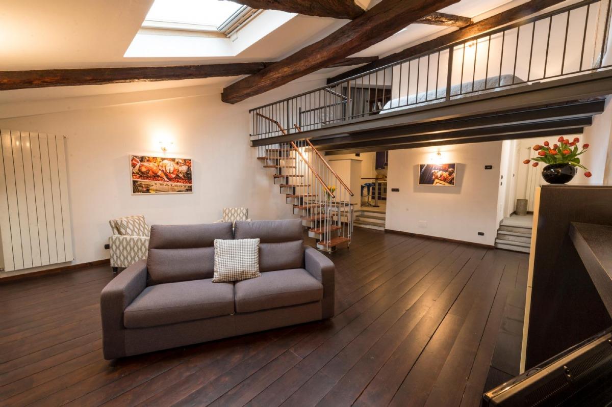 Open space di circa 60 mq elegantemente arredato composto da cucina completa di utensili con tavolo da pranzo e penisola; ampio soggiorno con divano letto matrimoniale e zona TV; bagno con doccia. Al piano soppalcato, letto matrimoniale con vista sul soggiorno.