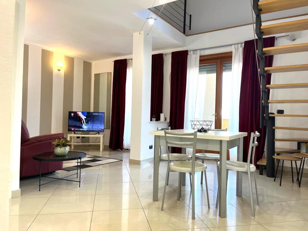Open space di circa 60 mq elegantemente arredato, composto da soggiorno con angolo cottura attrezzato con forno, lavastoviglie e frigo, tavolo da pranzo, zona TV con divano, bagno con doccia.